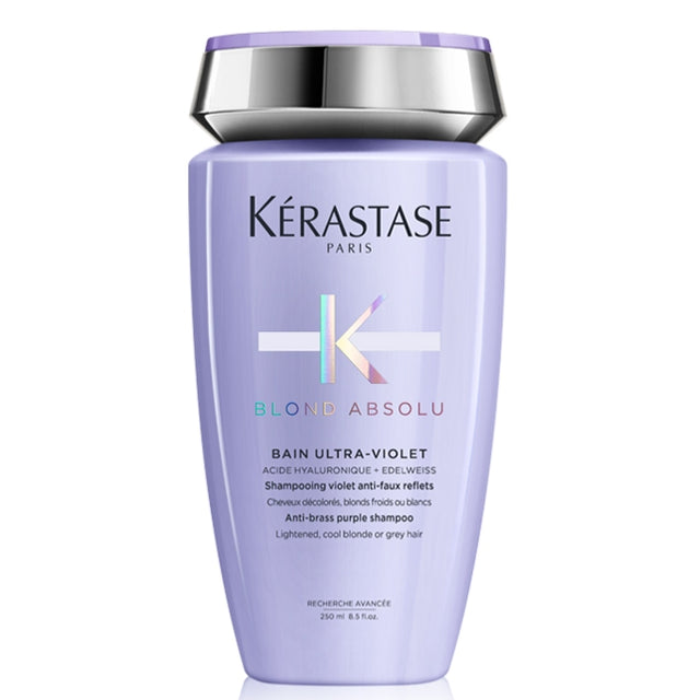 Idéal pour les blonds froids et les cheveux gris, l'utilisation hebdomadaire de ce shampoing permet une action anti faux-reflets durable.Il protège également de l'oxydation et de la pollution quotidiennes, apportant douceur et brillance à la chevelure. Egalement enrichi en acide hyaluronique et fleur d'Edelweiss, le Bain Ultra-Violet nourrit profondément la fibre pour illuminer le blond.