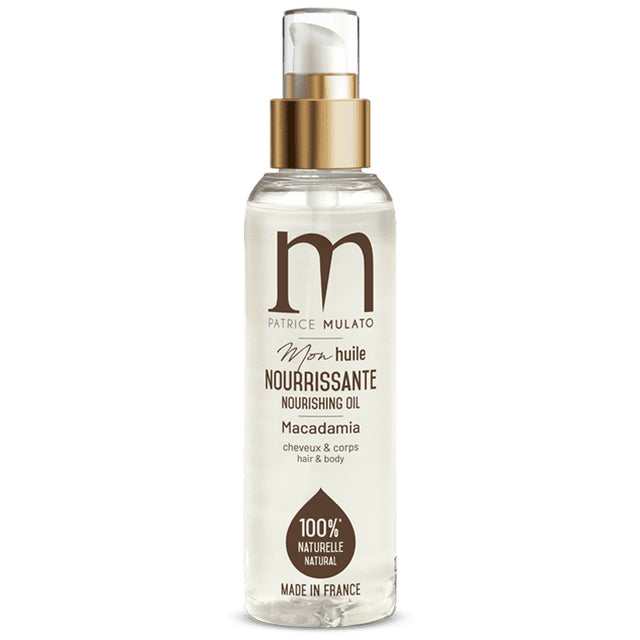 En soin de finition : Appliquer l'Huile de Macadamia de Mulato sur cheveux lavés et essorés, appliquer sur les longueurs et pointes.