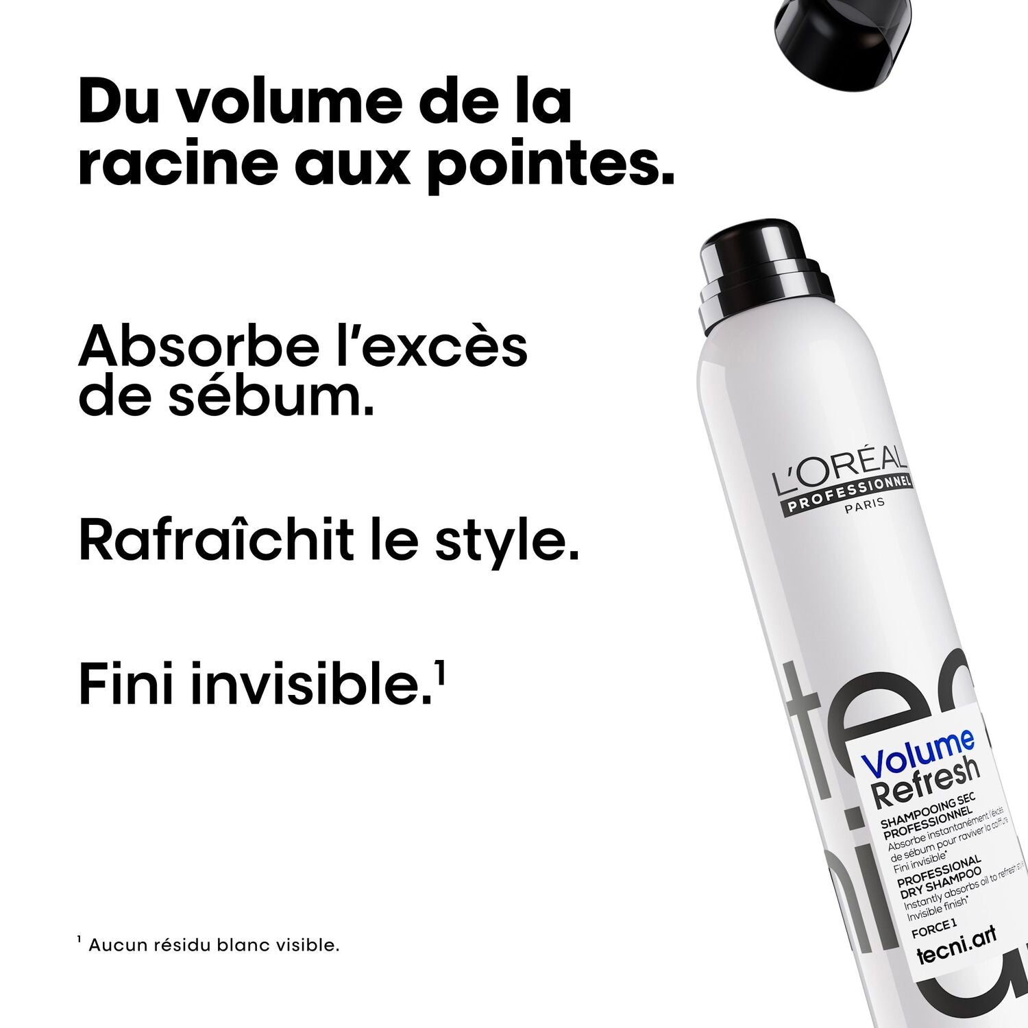 Volume Refresh est un shampoing sec avec fini invisible, qui absorbe instantanément l'excès de sébum pour raviver la coiffure et assurer une fraîcheur longue durée, sans résidu. Sa formule sans alcool protège des irritations.