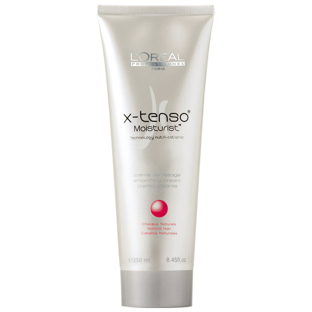 X-tenso Moisturist est la première crème de lissage de L'Oréal Professionnel aux vertus cosmétiques. Elle offre brillance et lissage naturel pendant au moins huit semaines et se décline en trois versions : la réduction de volume, le lissage brésilien tout en souplesse, ou encore le lissage raide baguette. Produit polyvalent permettant de réaliser 3 services de lissage : réduction de volume (à froid), lissage dit "brésilien" ou lissage dit "japonais" (à chaud avec plaques) Crème de lissage, existe en 3 forces : 0 cheveux naturels résistants, 1 cheveux naturels et 2 cheveux sensibilisés.